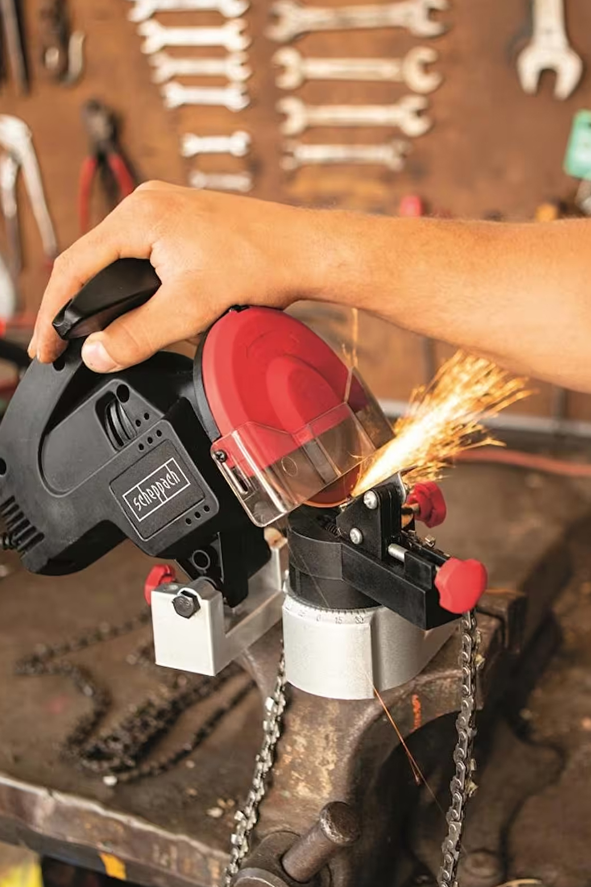 Scheppach KS1200 Zincir Bileme Makinesi ile motorlu testere zincirlerinizi her zaman keskin ve kullanıma hazır tutun!